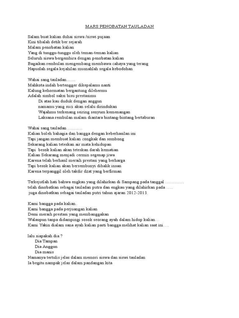 Semangat Pelajar Matahari bersinar lagi Langit biru tersenyum lebar Hujan tak lagi turun Angin menghembus raga sempurna Semua mata tertuju padanya Yang memancarkan.